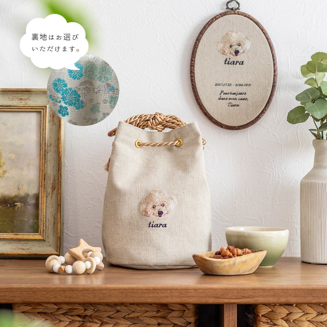 【2~5寸】うちの子 犬刺繍 猫刺繍|虹の橋メモリアル 骨壺袋 骨壺バッグ 骨壺カバー 表リネン+裏金襴生地/梅と八重桜【送料無料】