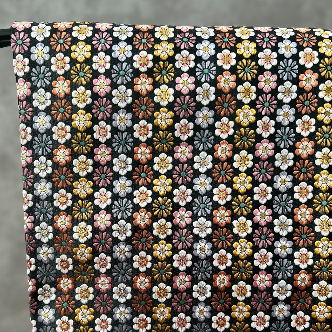 お花ひとつ分の直径は約1.8cmと小ぶりで、繊細な織り模様が生地全体に広がっています。