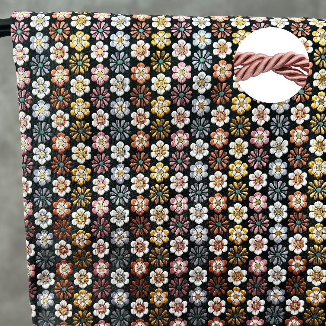 お花ひとつ分の直径は約1.8cmと小ぶりで、繊細な織り模様が生地全体に広がっています。