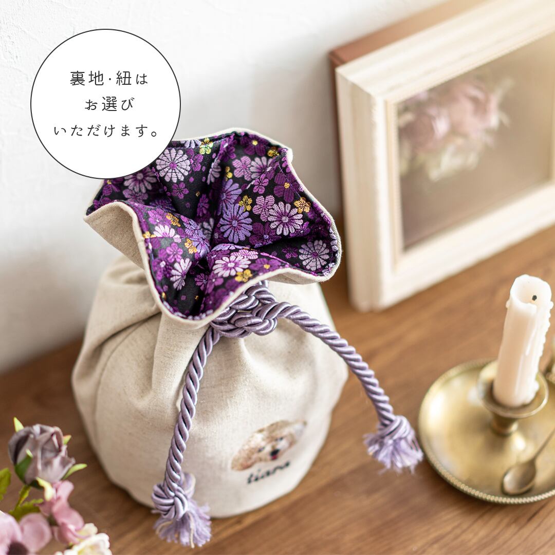 【6・7寸】うちの子 犬刺繍 猫刺繍|虹の橋メモリアル 骨壺袋 骨壺巾着 骨壺カバー 表リネン+裏金襴生地/梅パステル【送料無料】