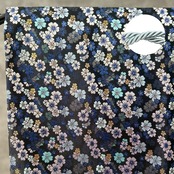 暗い背景に流れるように花々が配され、ところどころモザイクのように色が切り替わることで、幻想的な深みが生まれています。